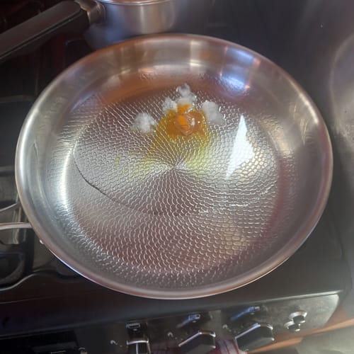 C'est ma première vraie bonne batterie de cuisine, et je suis très impressionné par cette petite poêle. J'ai suivi les conseils simples de TitanioX avant de l'utiliser pour la première fois. Elle a passé le test de l'œuf sans problème et le résultat est magnifique. Le nettoyage est également simple. Je reviendrai sans hésiter chez TitanioX pour mon prochain achat de poêle.